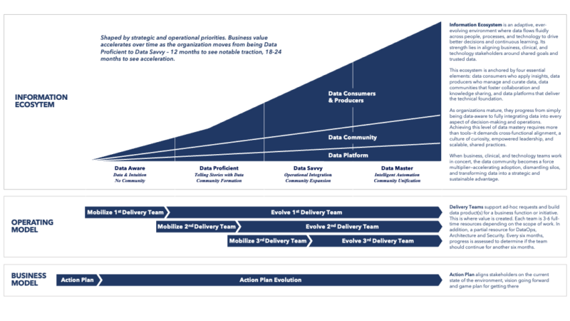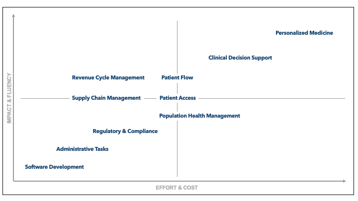 There are a few more things to consider. Data fluency and capabilities are NOT uniform across the organization. Revenue cycle and quality and safety may be much further along in their analytics and AI journey than supply chain or HR.